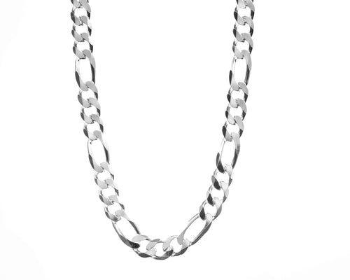 A continuación se muestra nuestra cadena Figaro de plata de ley de 8 mm y 22 pulgadas.