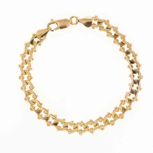 Crafted in solid 14kt yellow gold, the bracelet carries real weight and shines with every movement. Ideal for those who prefer a bracelet that stands out with subtle detail rather than flash alone.