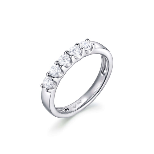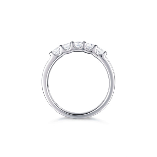 Adeline Round Diamond Wedding Ring features 0.55ct of round cut stones set in a 2.5mm wide band. This is a half eternity band, with stones adorning only the top half of the ring for comfort and elegance.