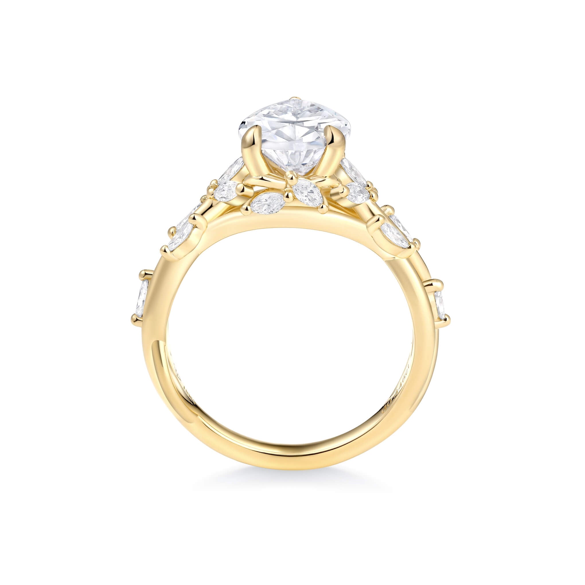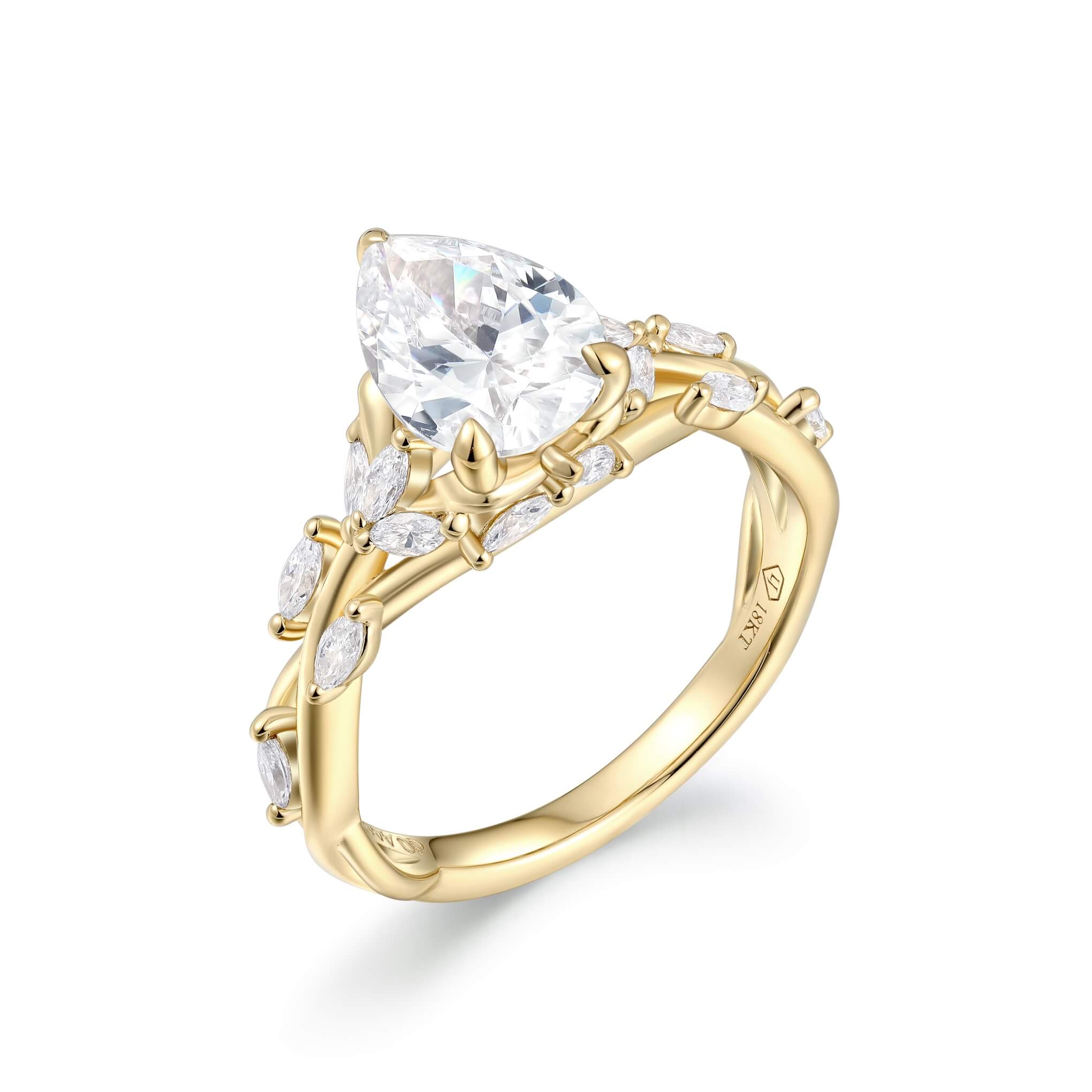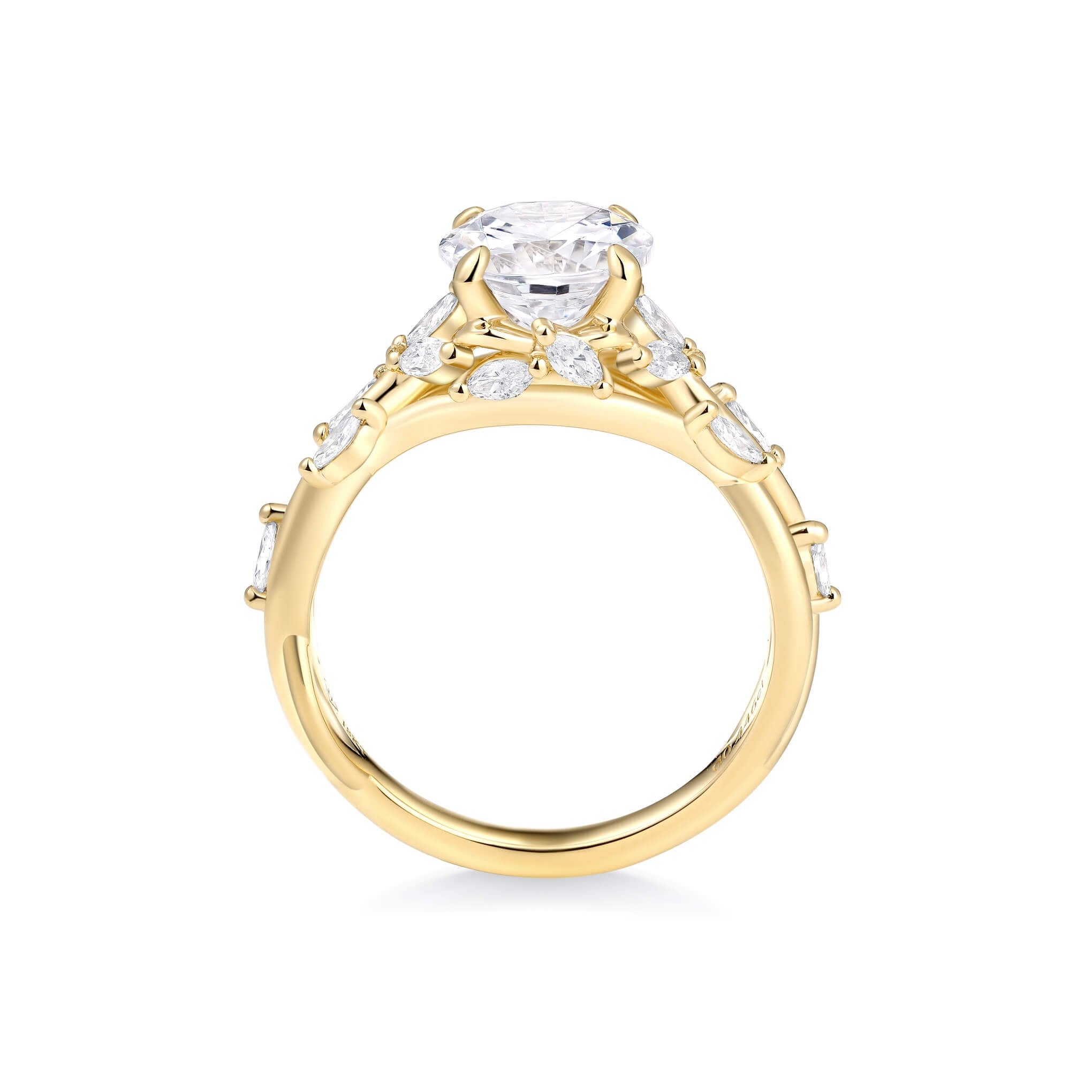 • Accent Stones: Delicate marquise and round stones that add a graceful, organic touch