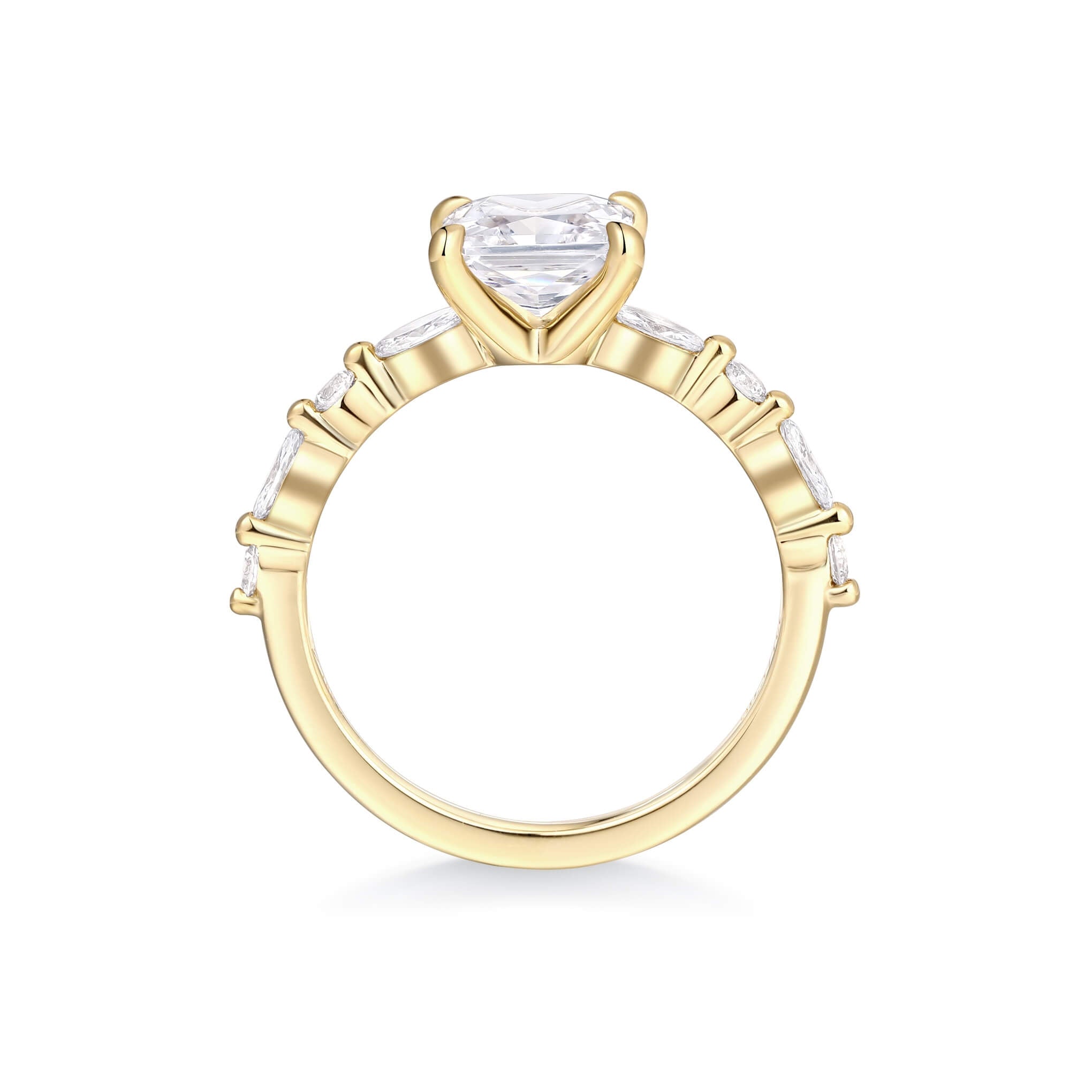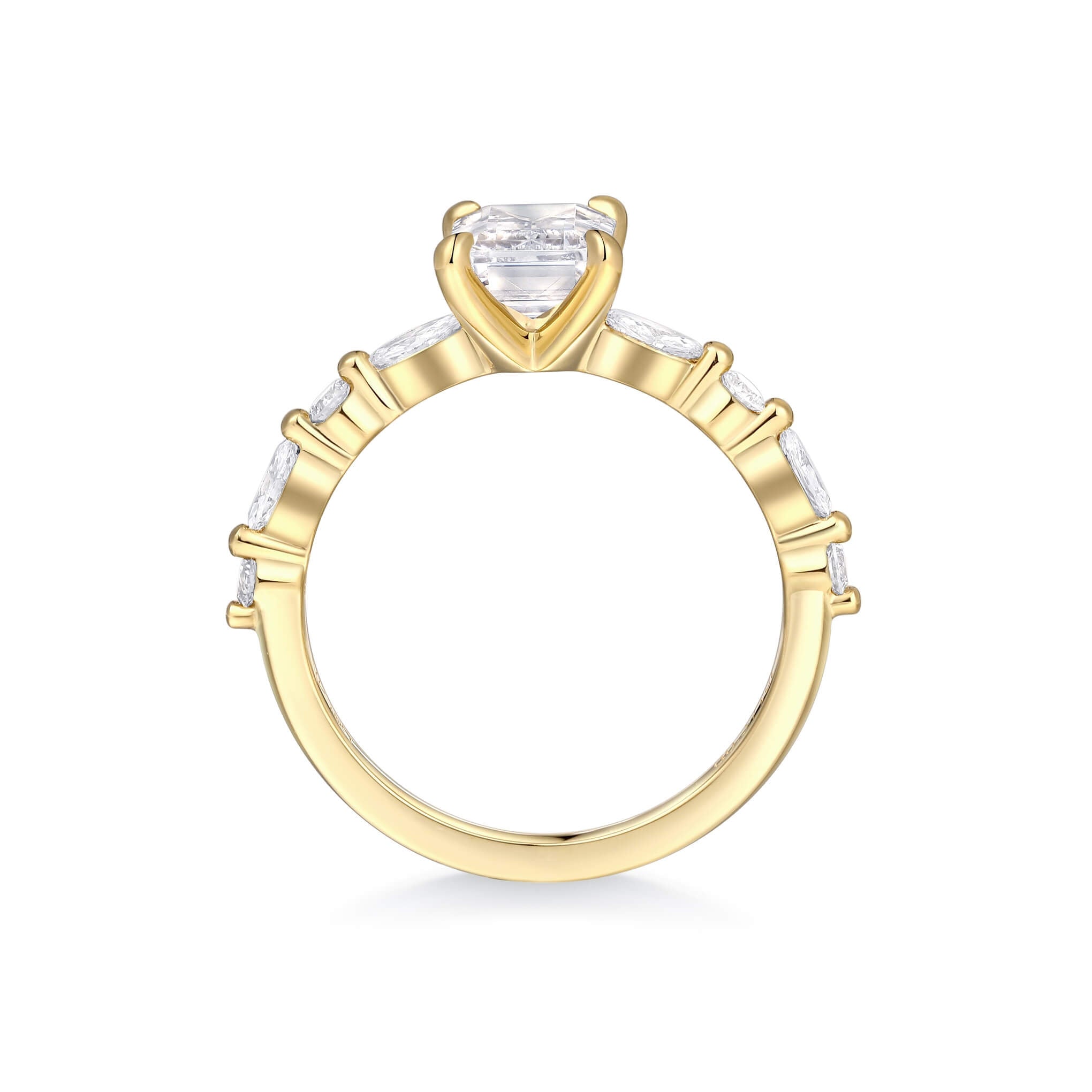 The Marquise Accent Solitaire Engagement Ring combines classic elegance with a touch of modern flair. Featuring a brilliant round center stone in a four-prong setting, the band is adorned with alternating marquise and round accent stones for a captivating, sophisticated look. Available in 18kt gold or platinum, this design is perfect for celebrating your unique love story.