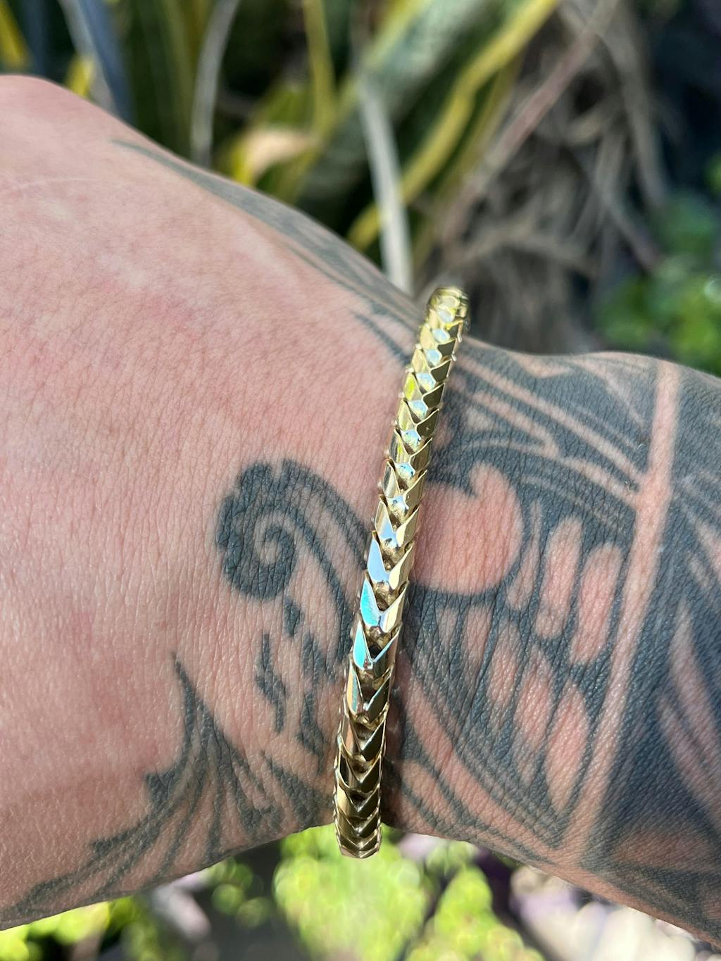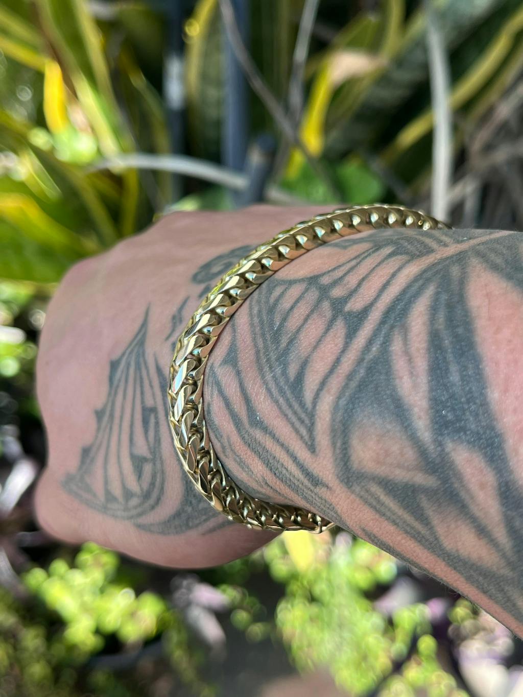 Franco link chains and bracelets are a top option for many jewelry enthusiasts! These pieces are a solid slightly cylindrical designed gold bracelet that has a very intricate italian design. These pieces are designed/made by italian machine.