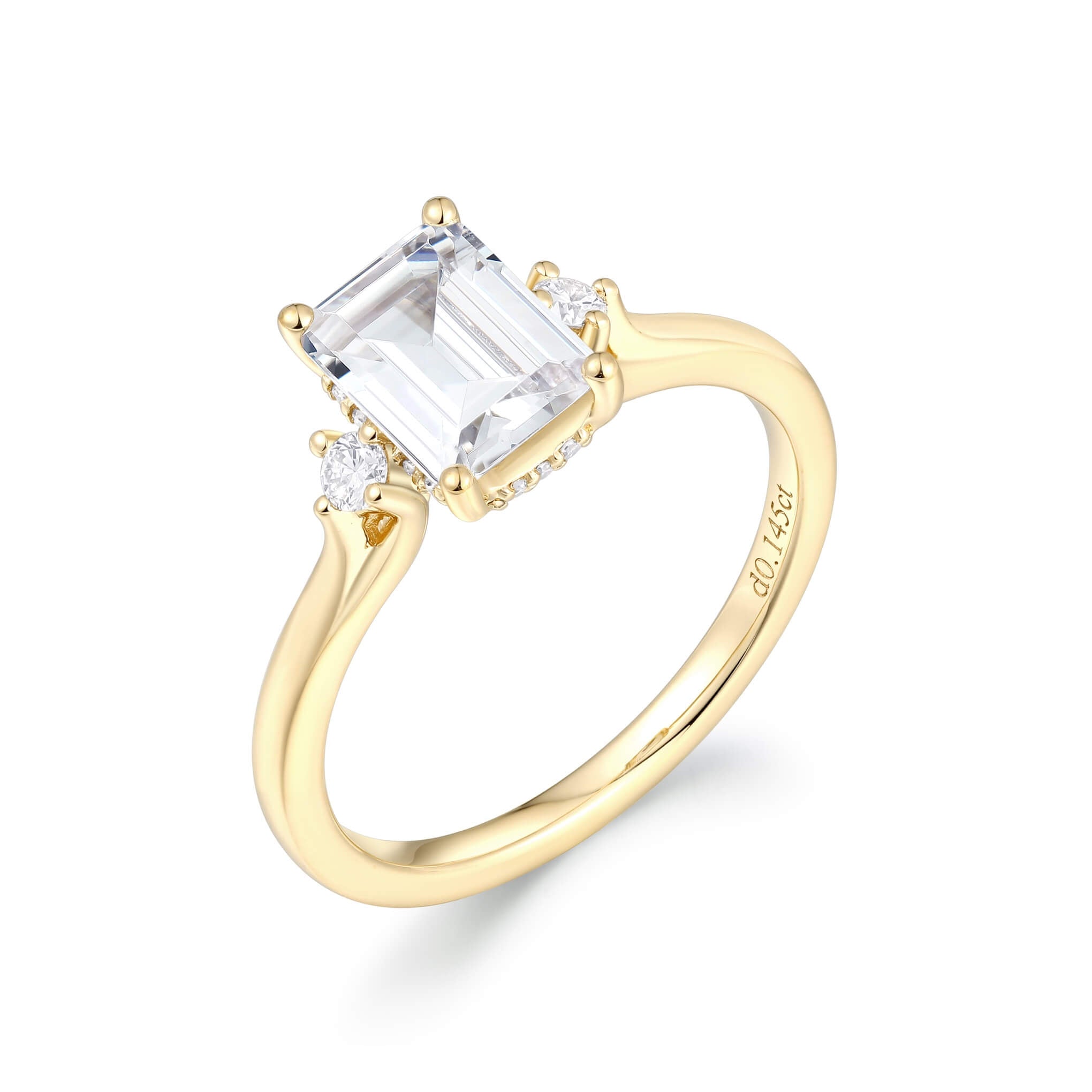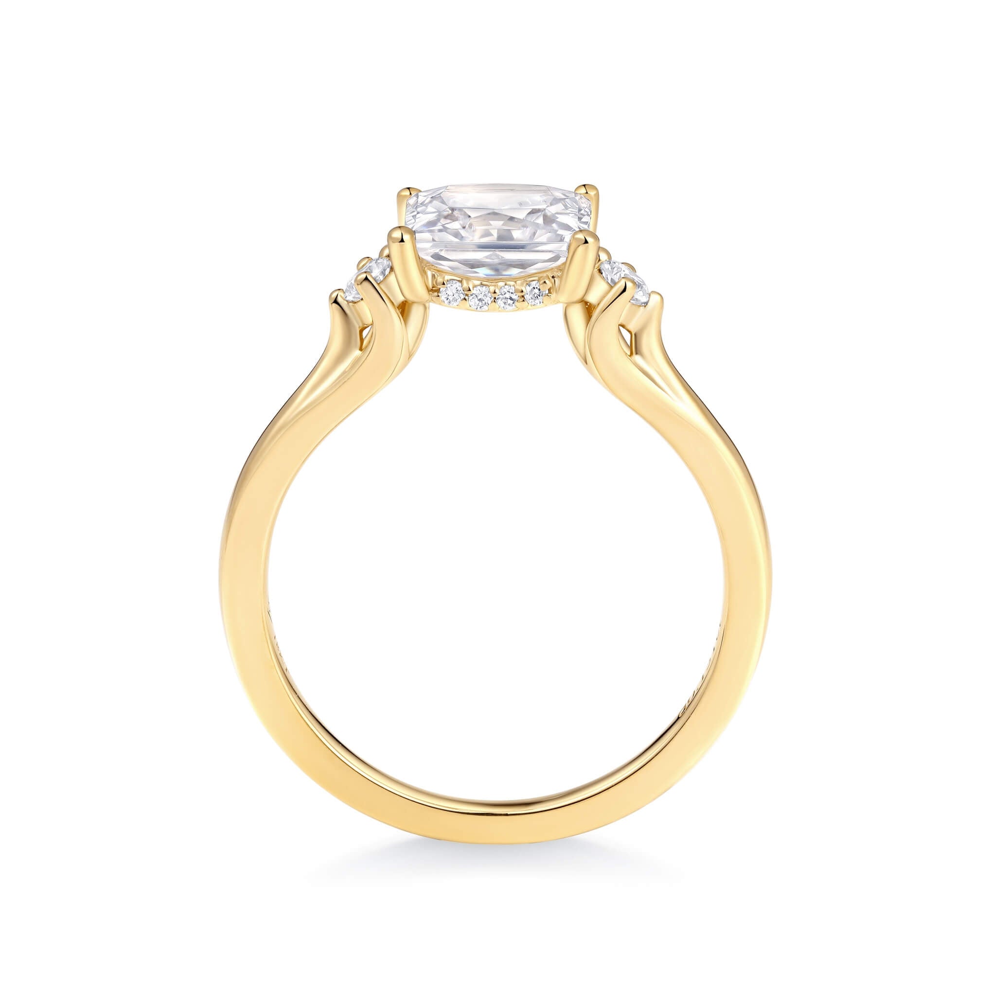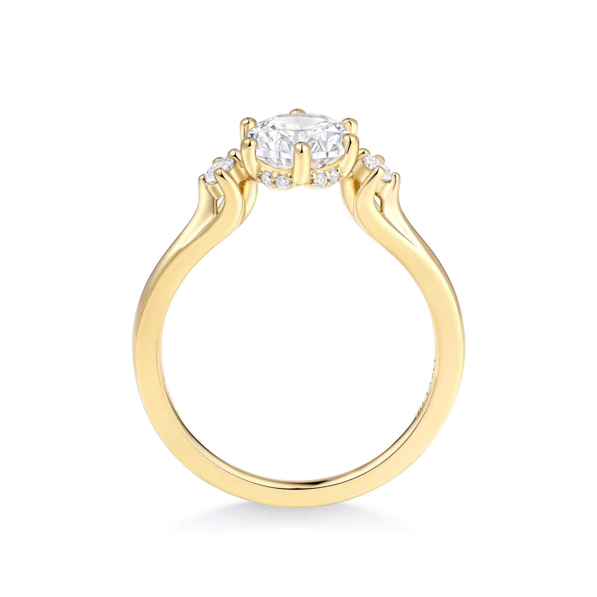 • Accent Stones: Round diamond accents for added elegance