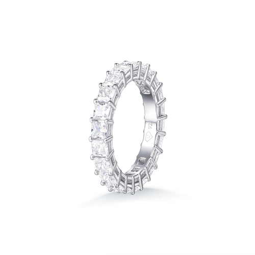 Zaria Asscher Diamond Ring features 3.3ct of diamonds in a refined asscher cut, set into a 3.6mm wide band. Designed for elegance and durability.